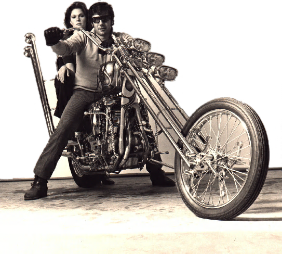 The radical cycle desired by everyone in the film was designed and built by Frank Charolla of Downey Custom Cycles in California. Depending on your definition of sexy, the lovingly photographed knucklehead chopper, with her extended forks, three headlights and glistening smokestacks, could well be the breakout star of The Hard Ride! Co-star Robert Fuller, renowned by the 1971 shoot for his starring roles in westerns Laramie and Wagon Train, said at the time that riding the often temperamental chopper was “just a case of switching saddles”. He did the majority of the riding scenes himself.