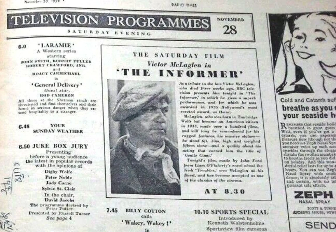 Below is the listing for Laramie in the UK Radio Times for Laramie Season 1 Episode 8 entitled General Delivery showing on Novemebr 28th at 6pm